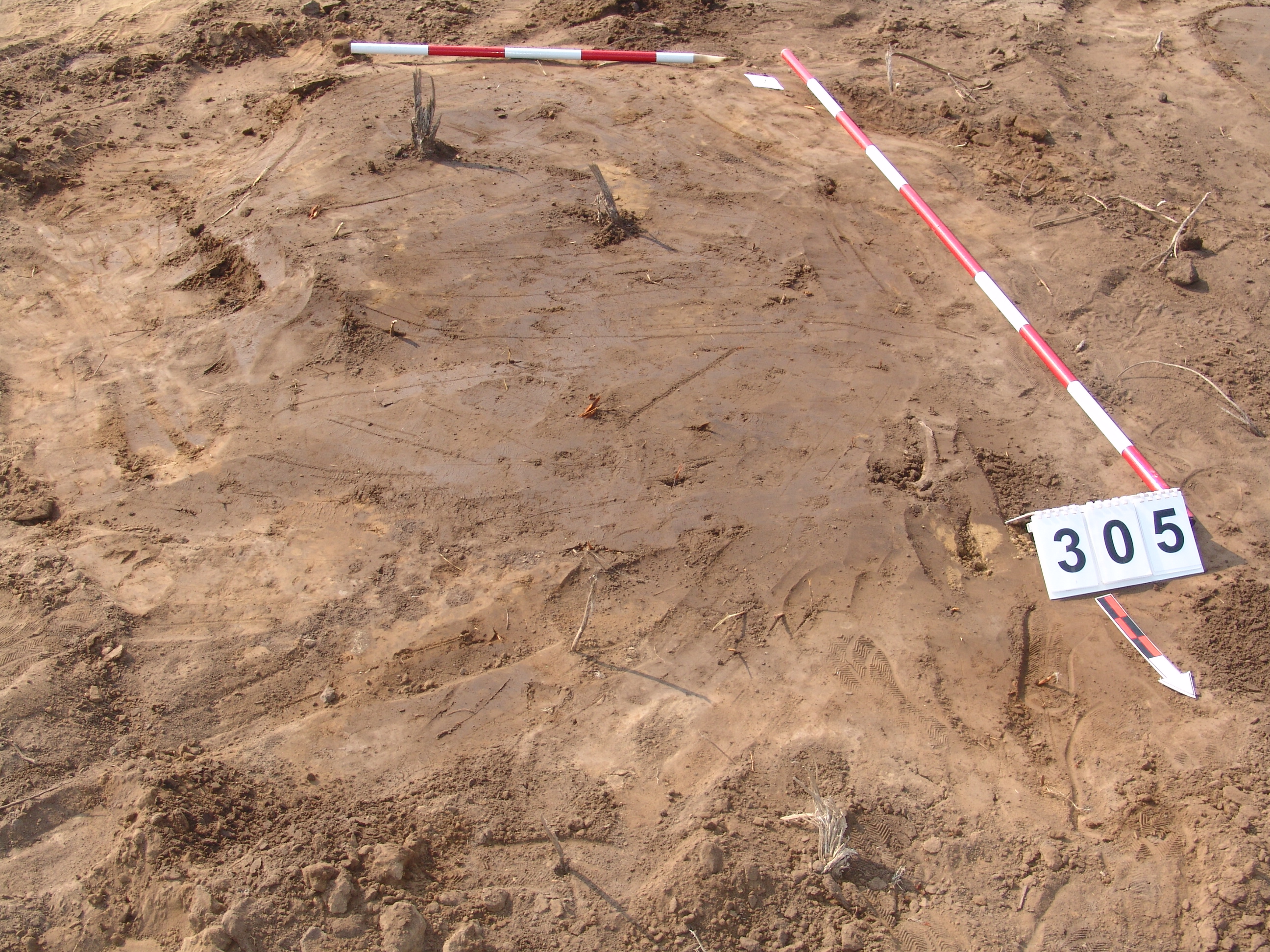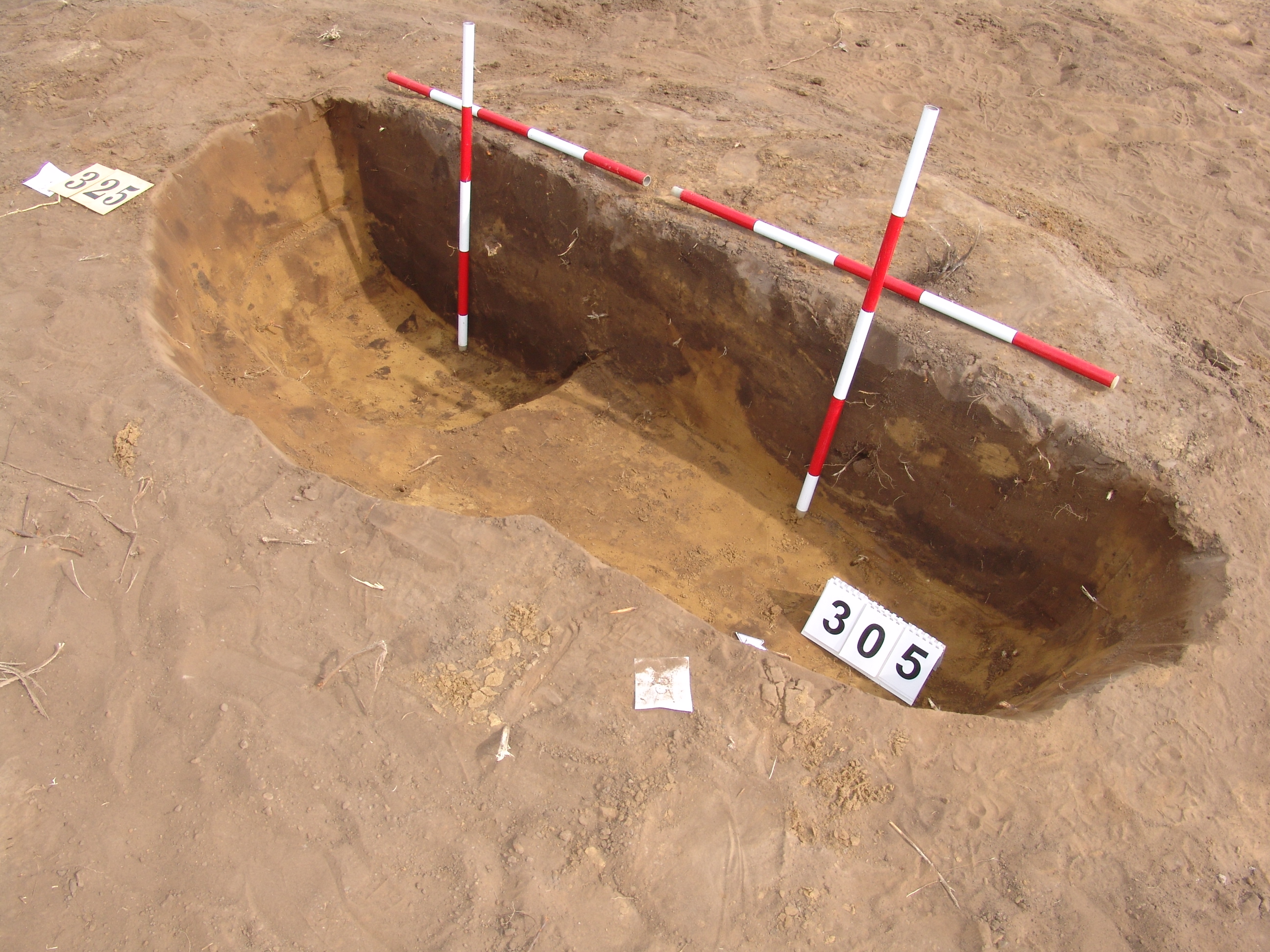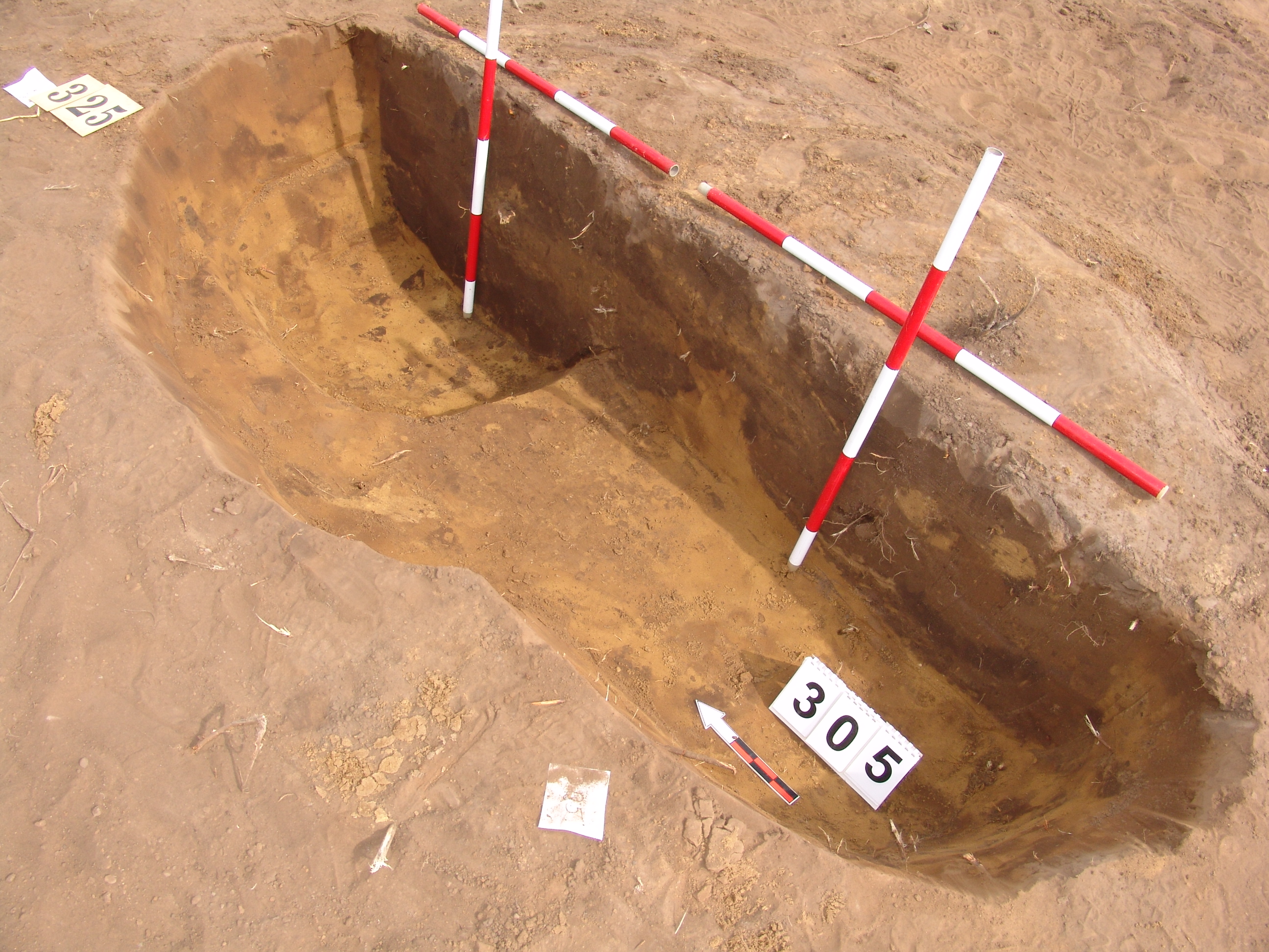 A 304-es obj.-tól 3 m-re jelentkező szürkésbarna ovális folt. Csaknem függőleges falú, egyenes aljú, kör alaprajzú enyhén réteges betöltésű gödör, közvetlen mellette a 325. obj.