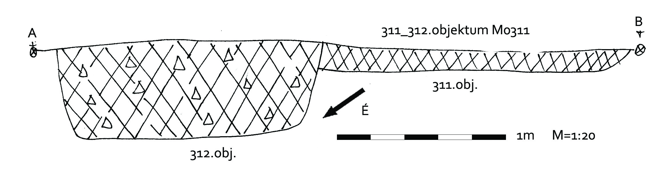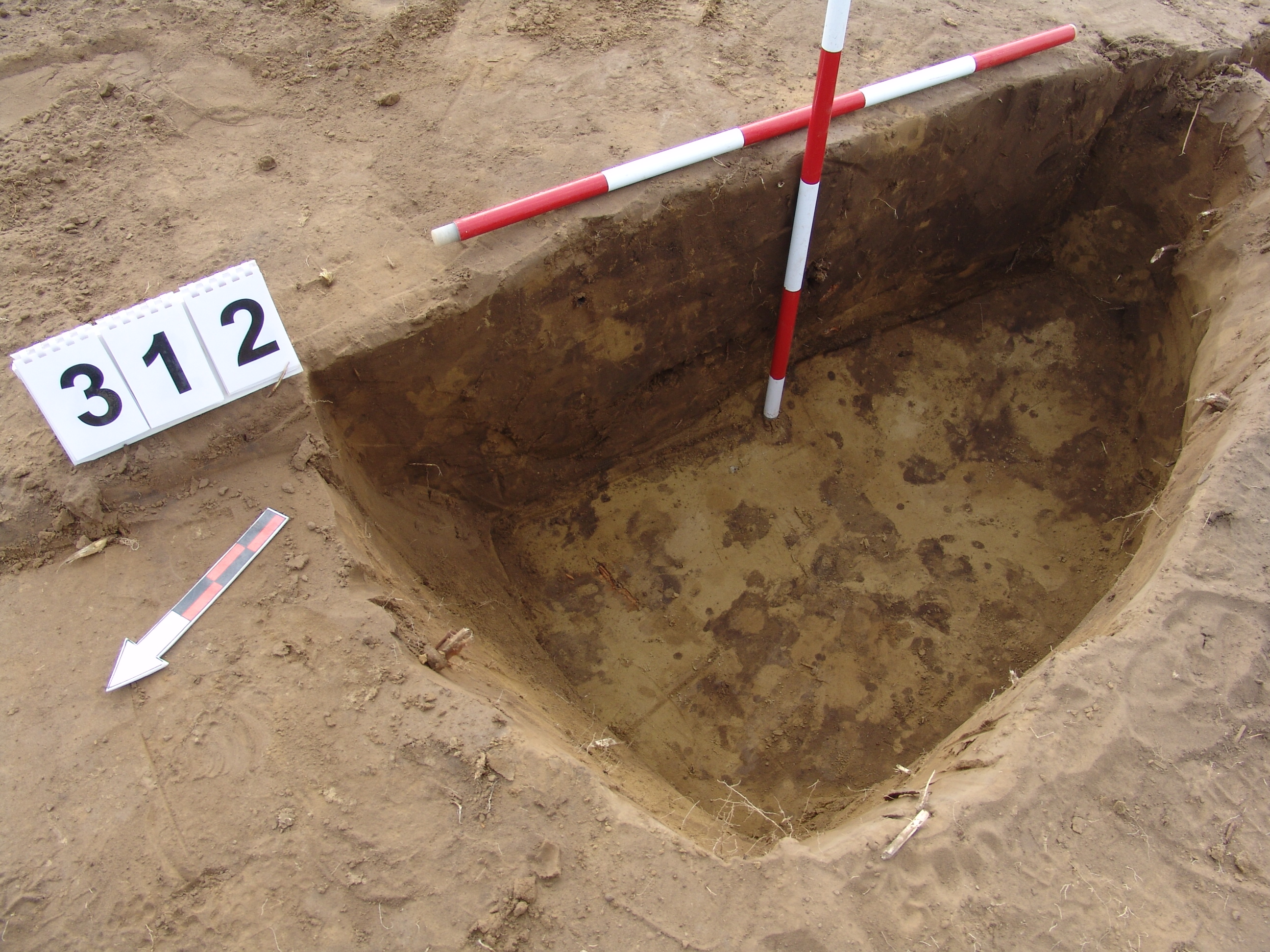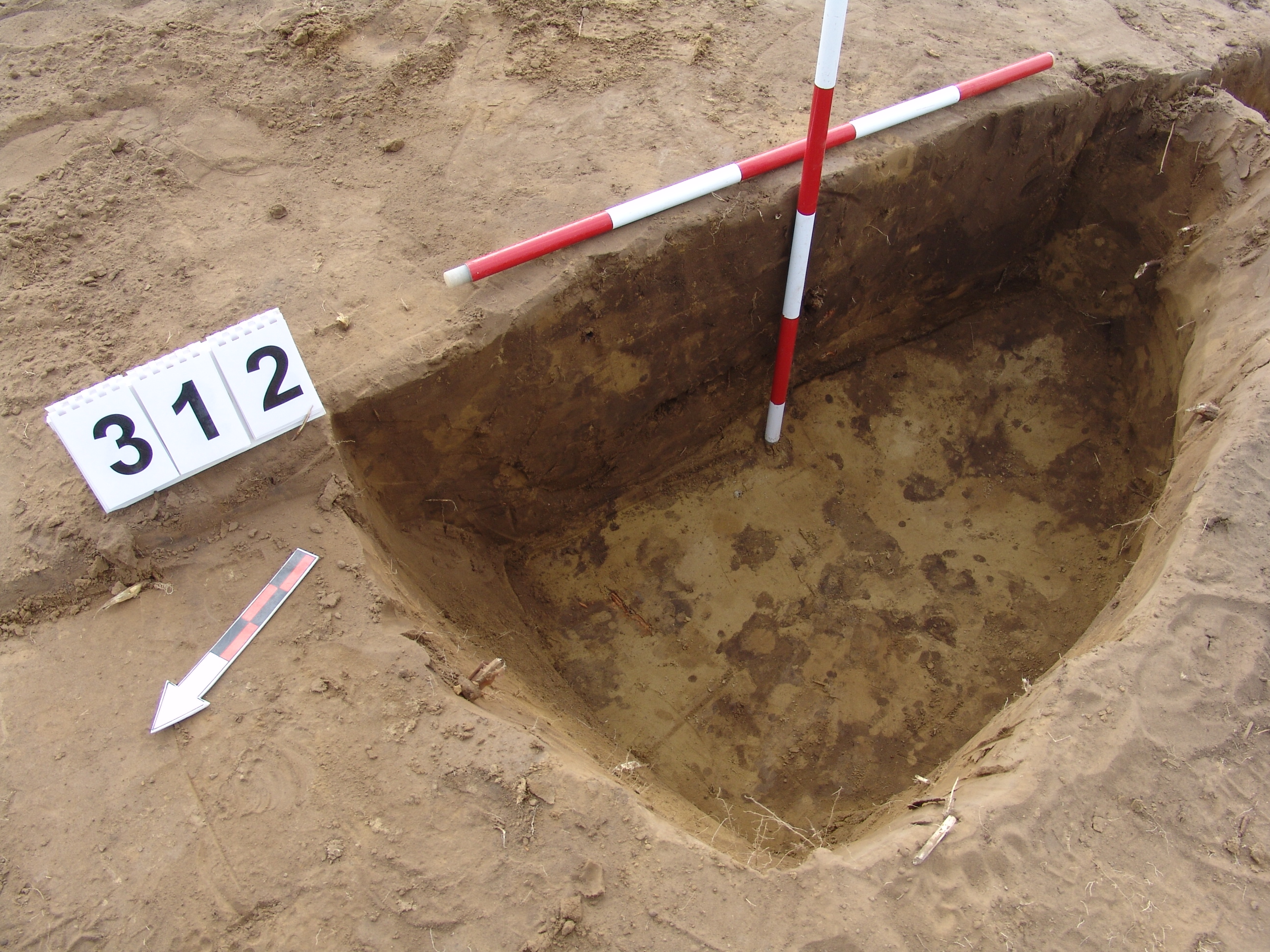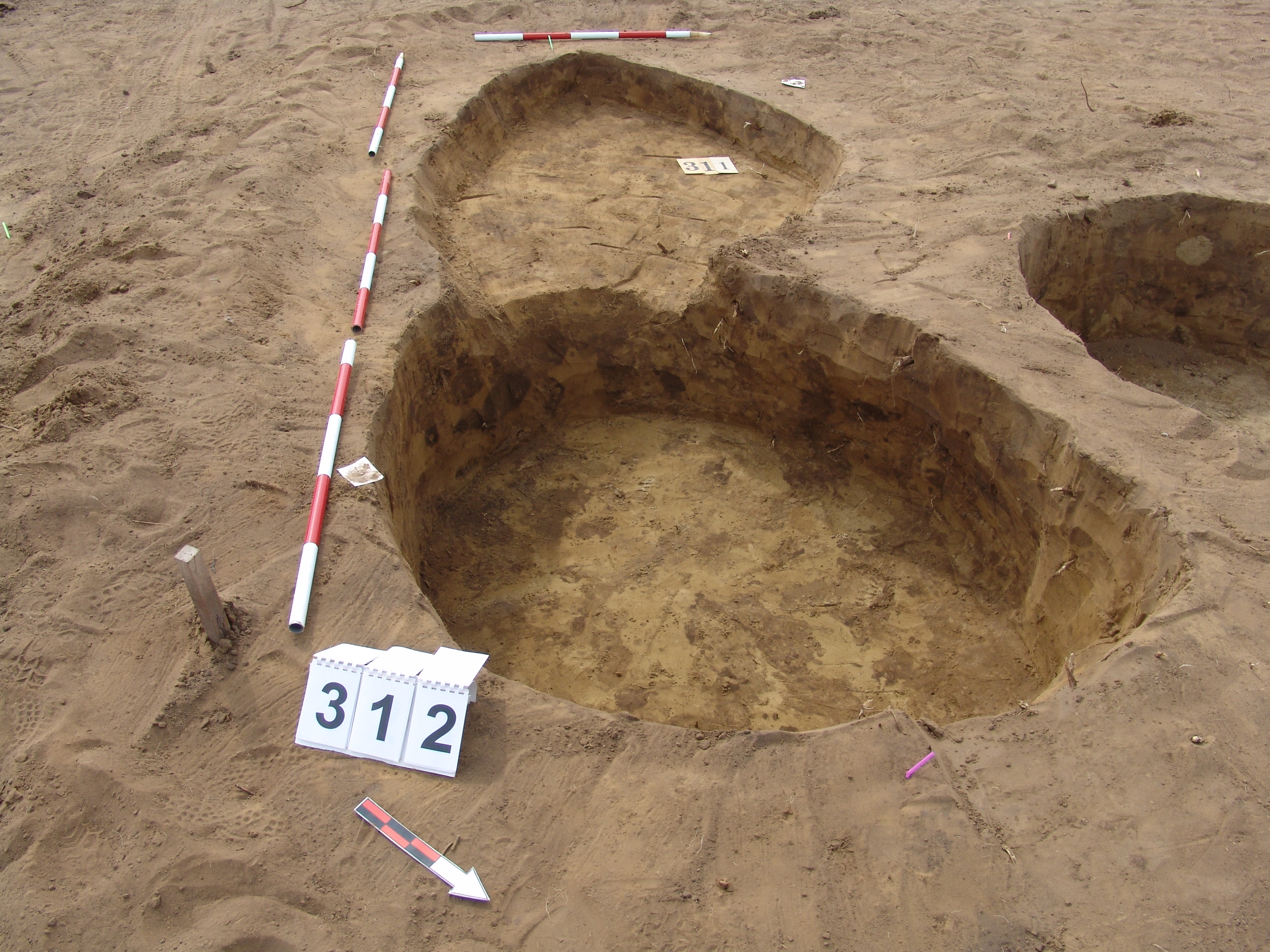 A 311. objektum fölé, annak K-i szélére ásott gödör, mely kerek, kissé elúszó folttal jelentkezett.
