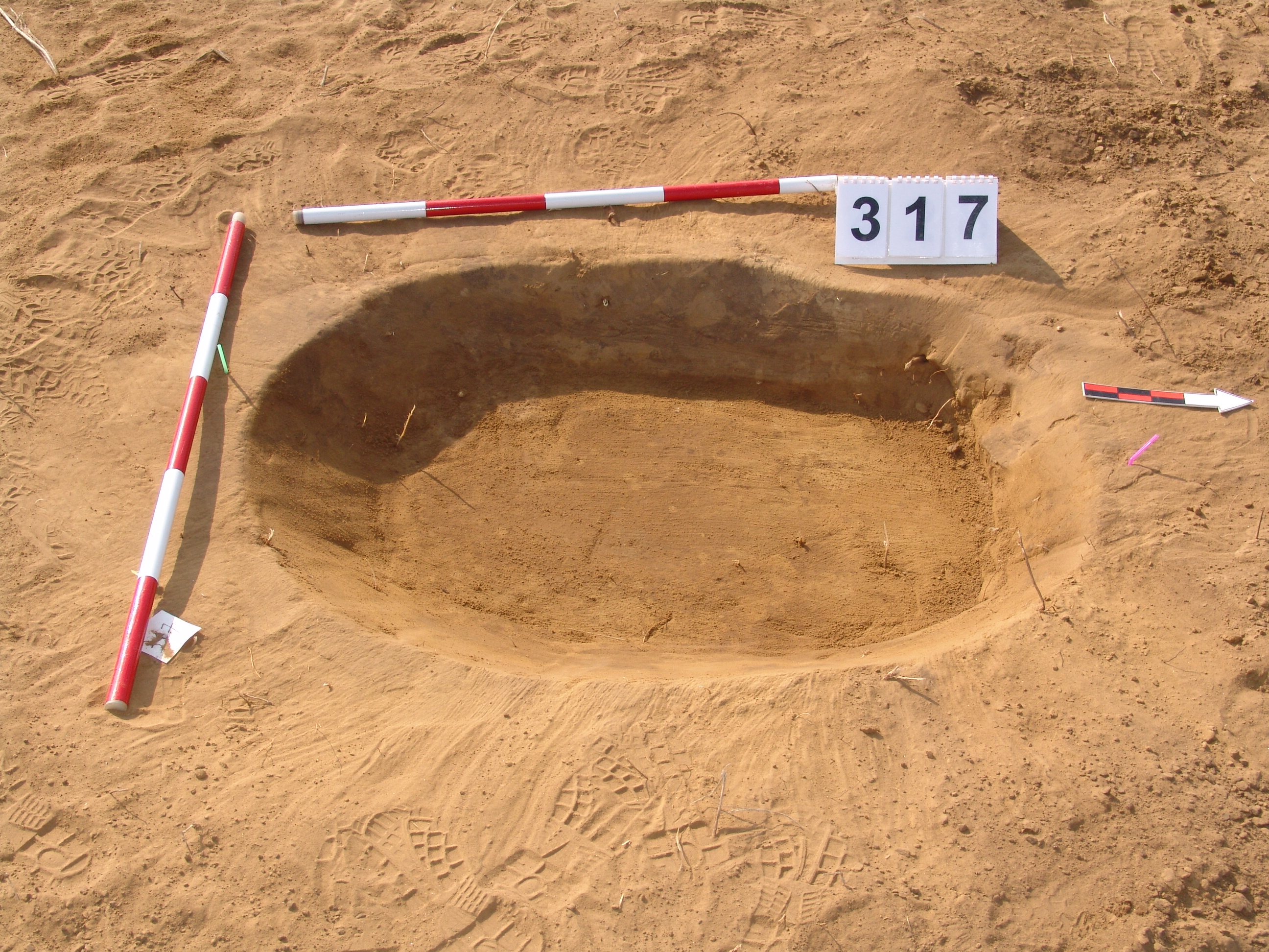 A 4114. karótól É-ra 5 m-re elúszó kerek folttal jelentkező jelenség. Lekerekített sarkú, négyszög alaprajzú, meredek falú, egyenes aljú gödör.