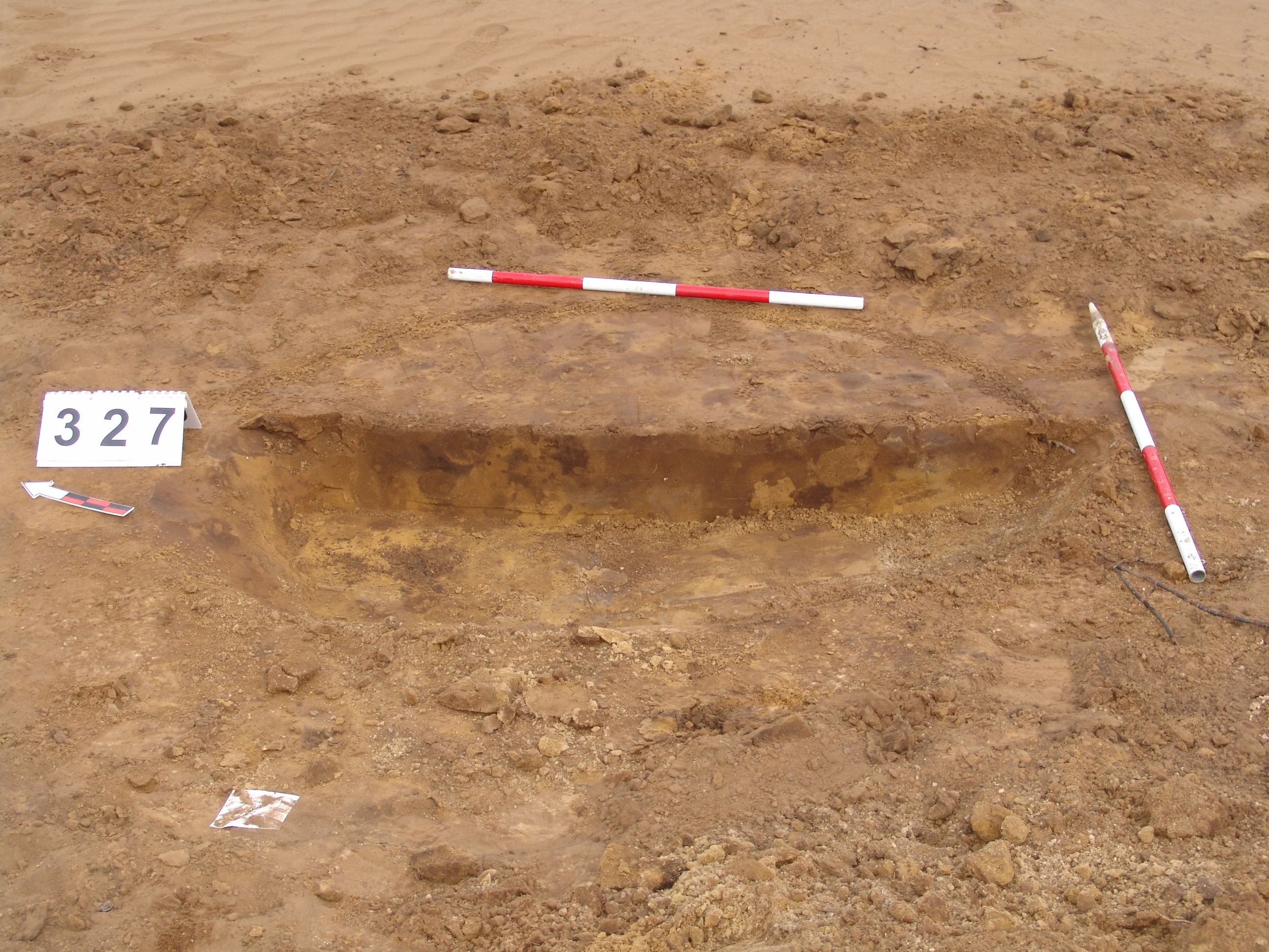 A földdepótól D-re, a kanális parton lévő szonda DNy-i részén elúszó folttal jelentkezett. A bontáskor kiderült, hogy nem régészeti jelenség.