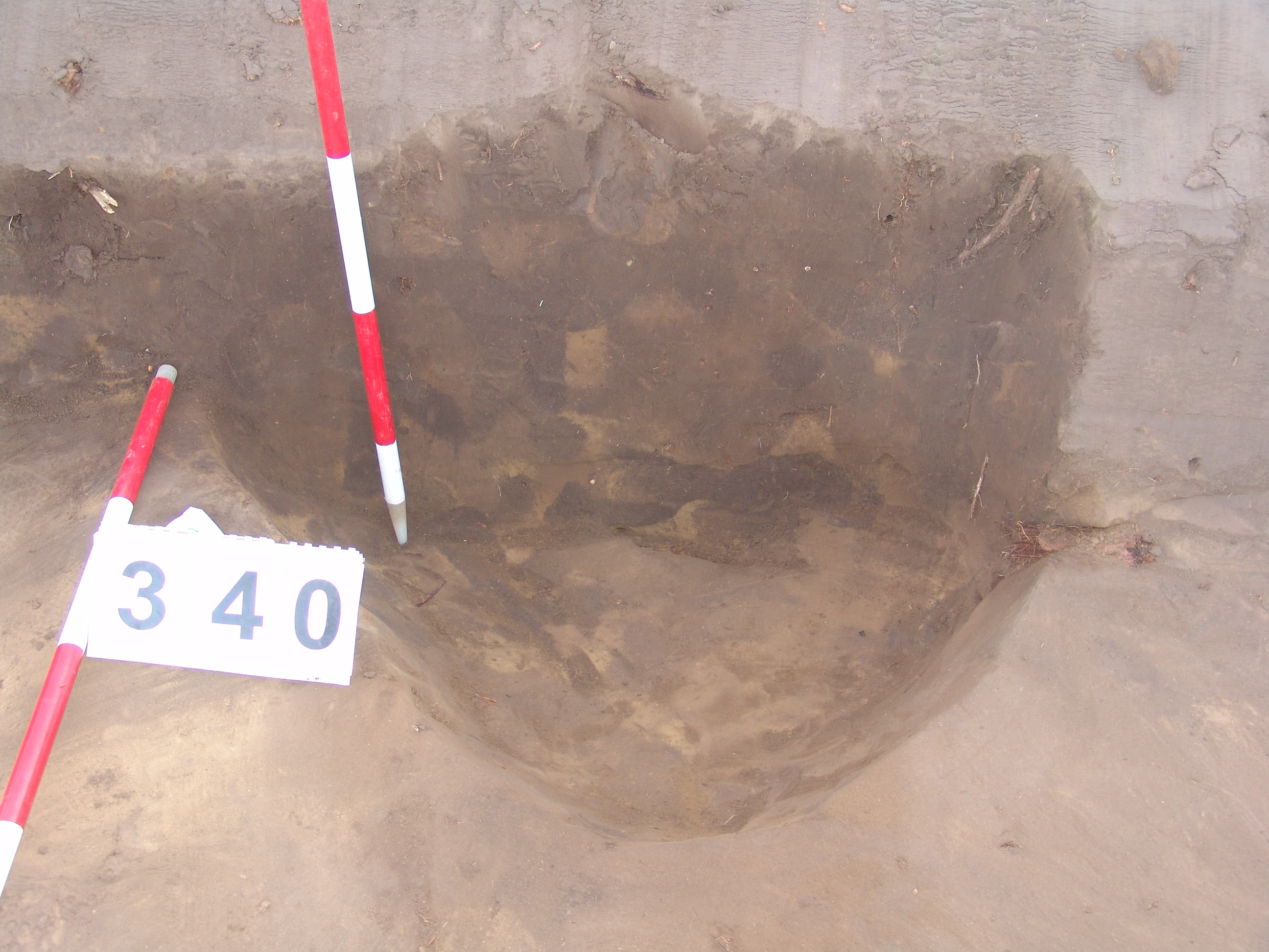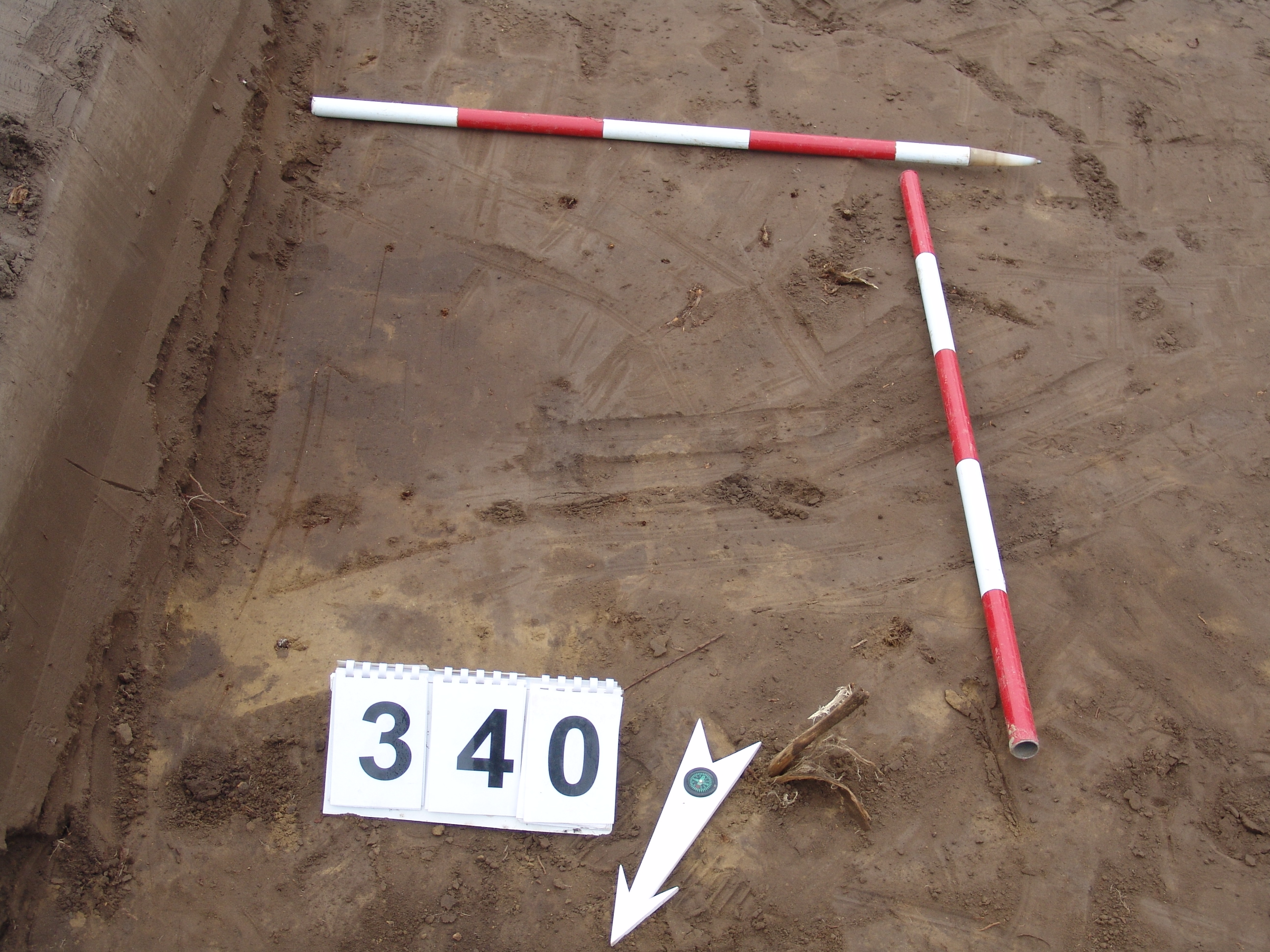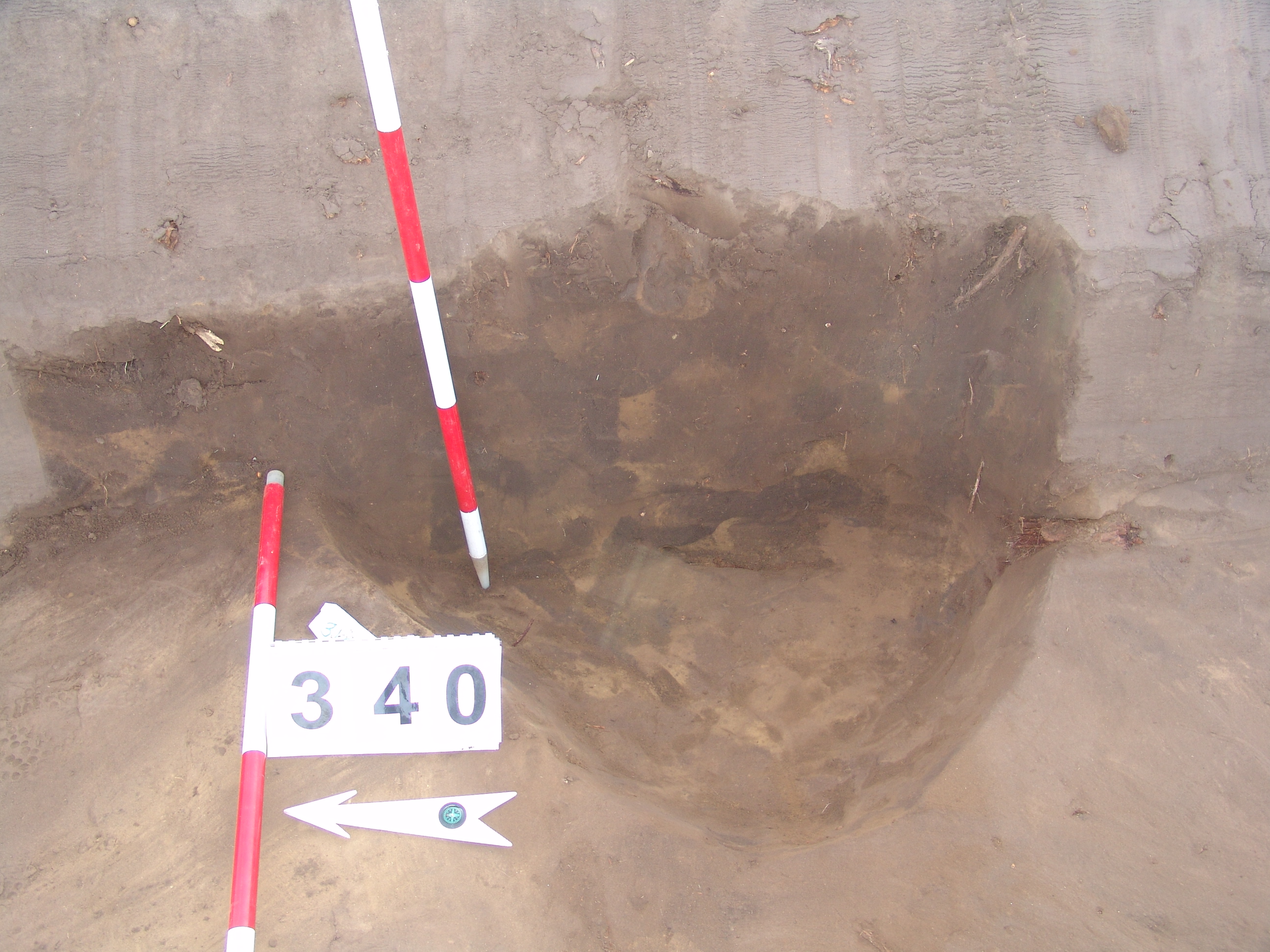 Keskeny, világosbarna, állatjárással bolygatott felszínű objektum a keleti szelvényfal alatt részben. Fala bizonytalan, alja erősen gyökerekkel bolygatott. Fala enyhén meredek, alja egyenes. Félkör alakban "nyúlik ki" a K-i falnál.
