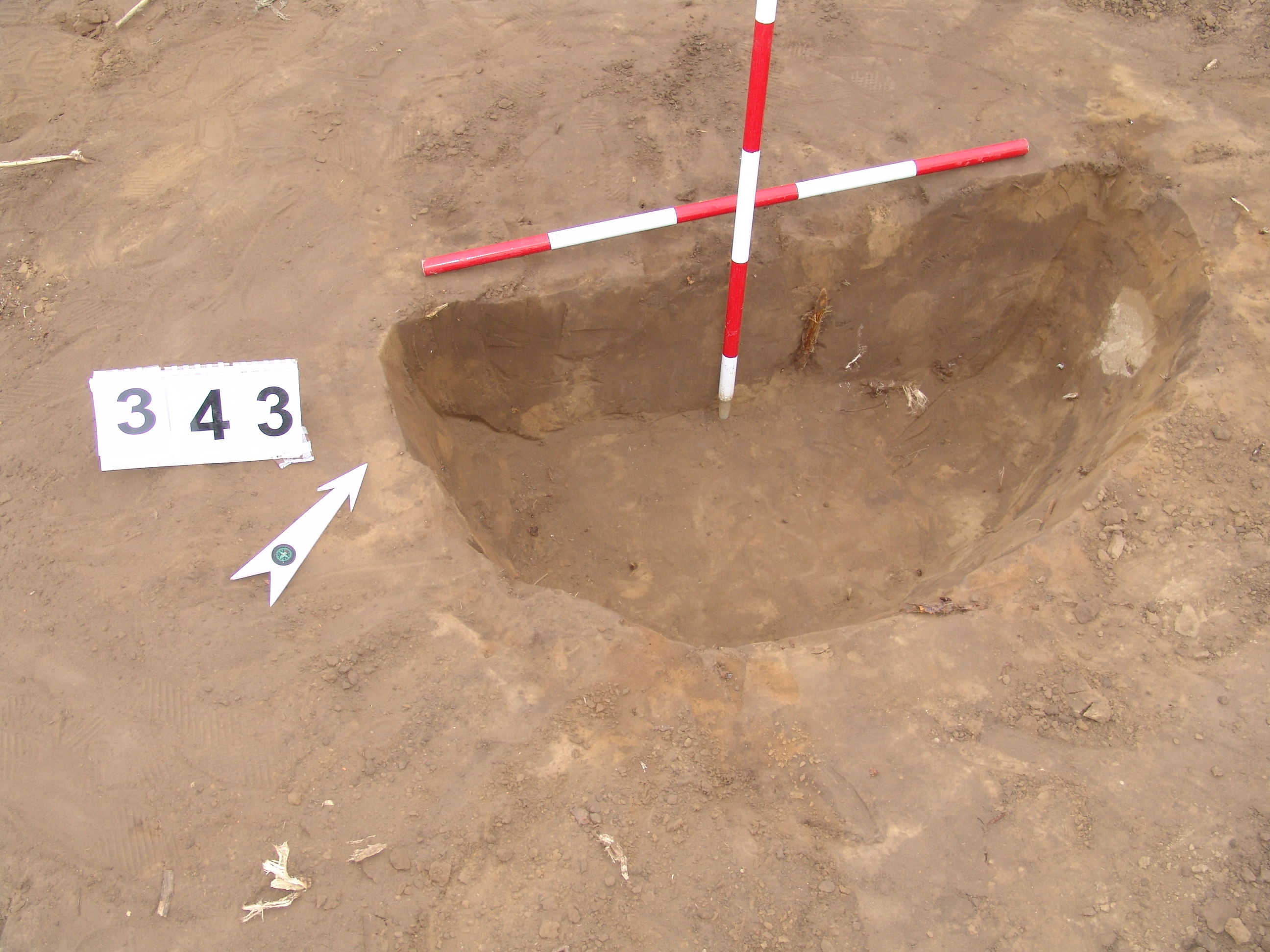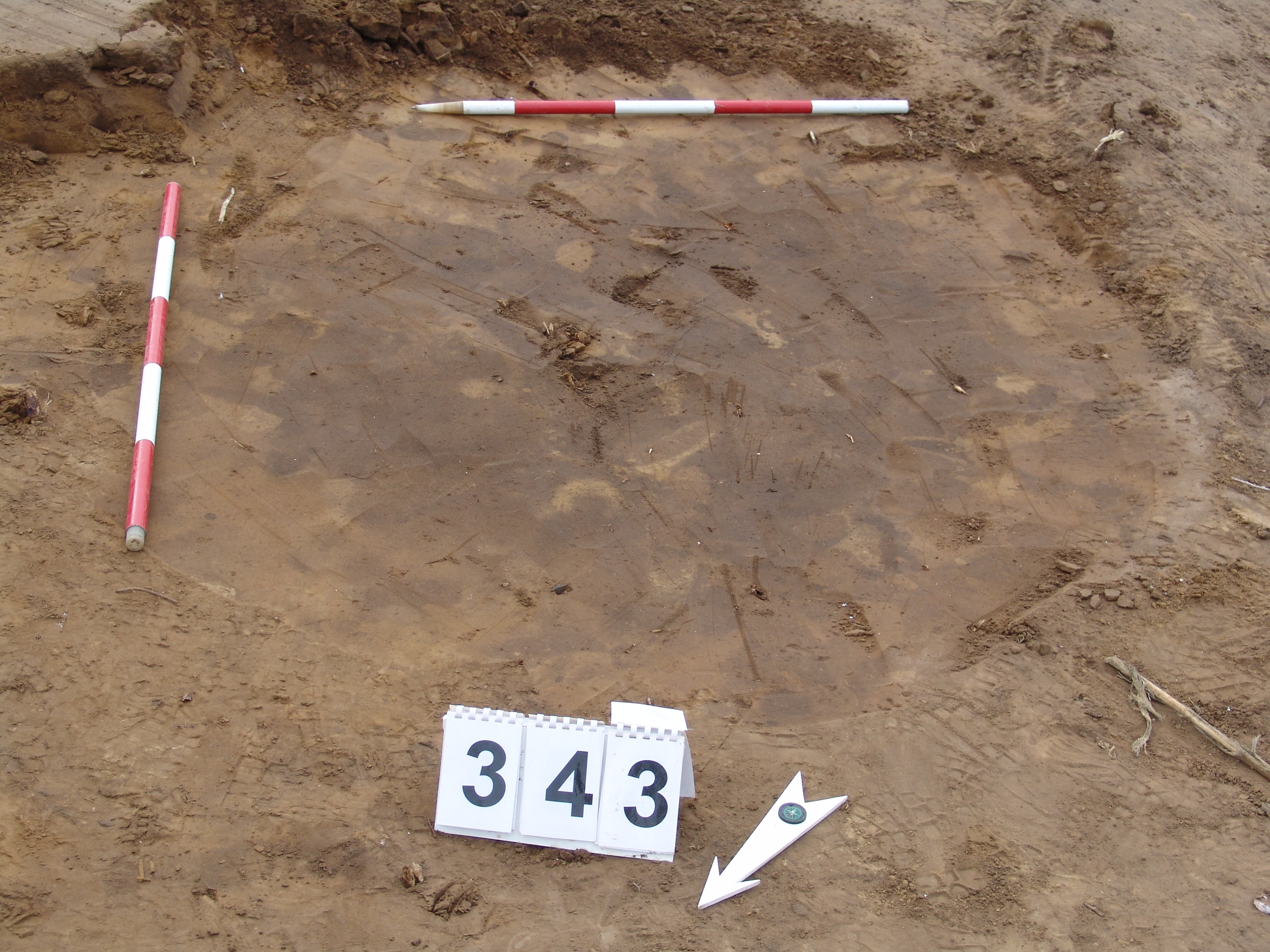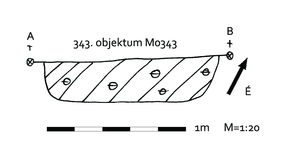 Kör alakú, szürkésbarna, állatbolygatott felszínű objektum a domb gerincén a keleti szelvényfal közelében.