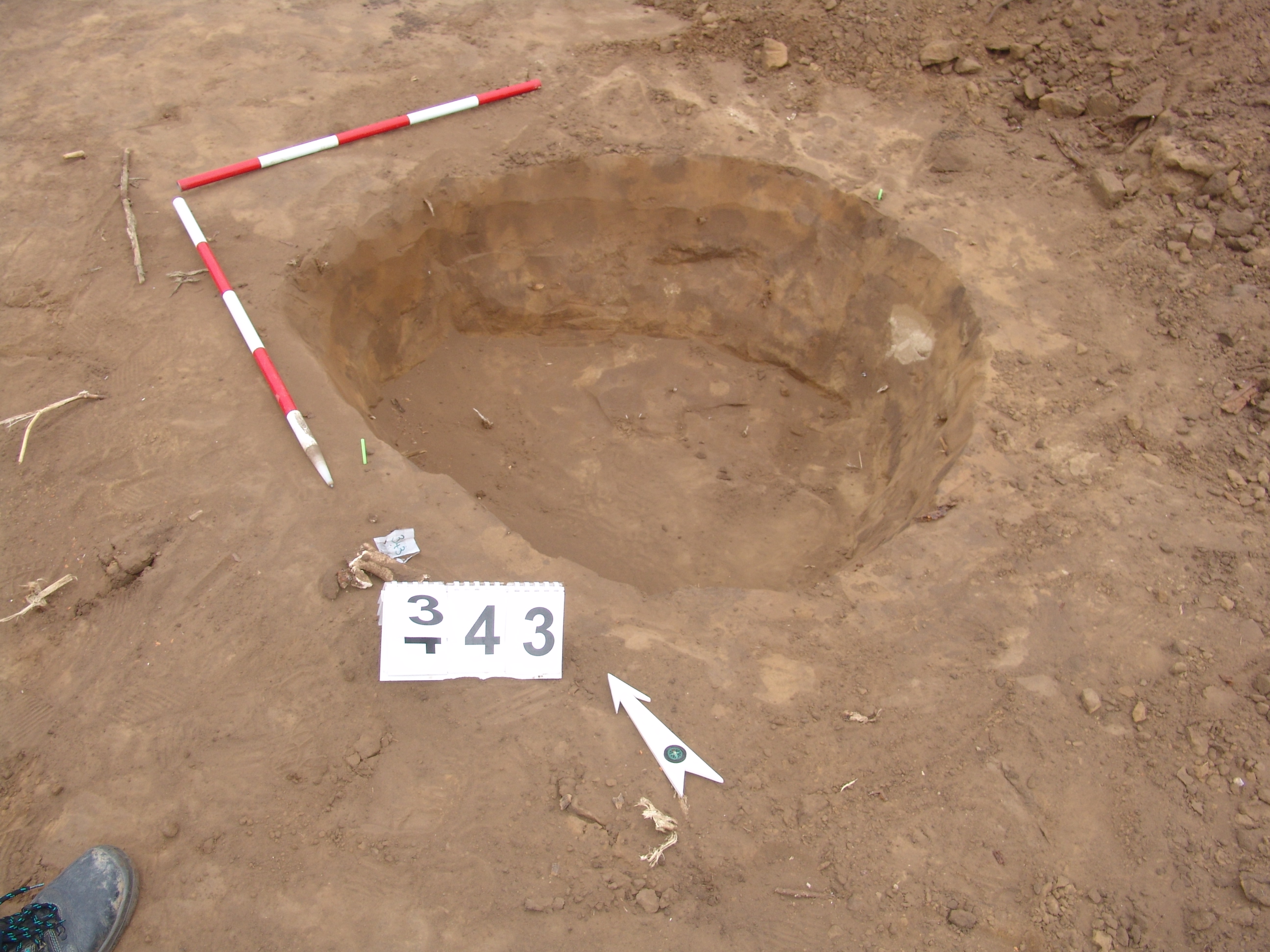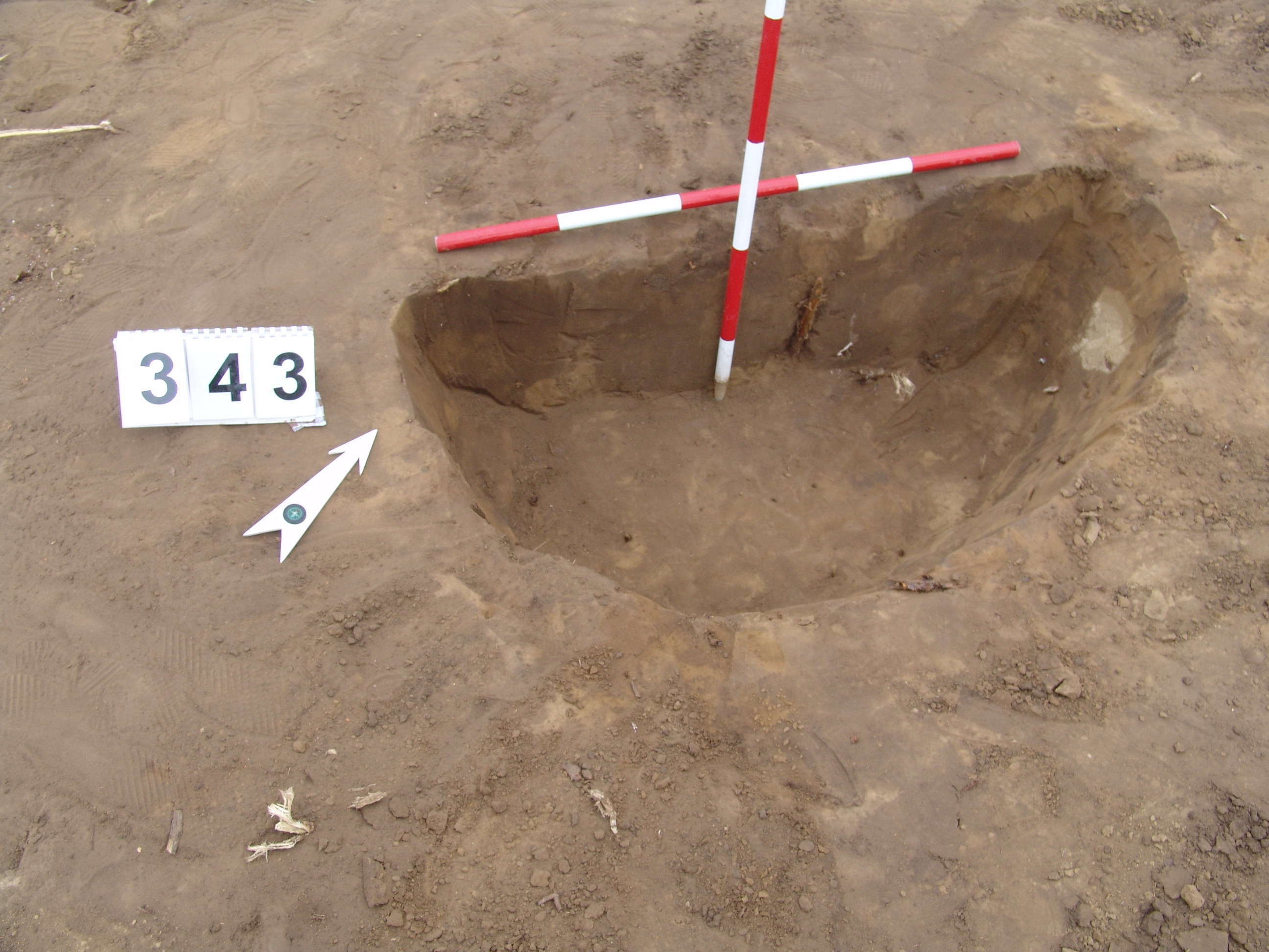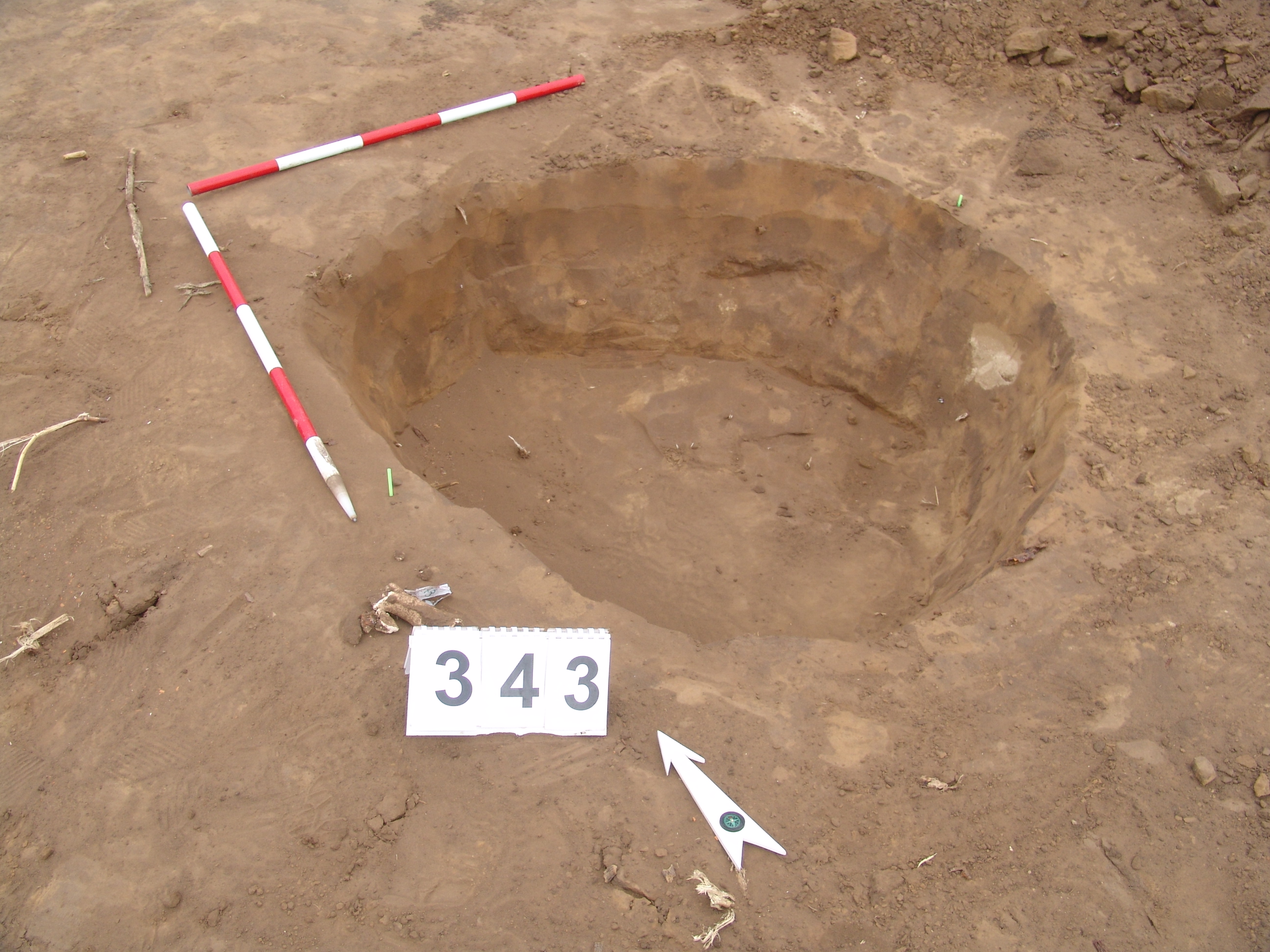 Kör alakú, szürkésbarna, állatbolygatott felszínű objektum a domb gerincén a keleti szelvényfal közelében.