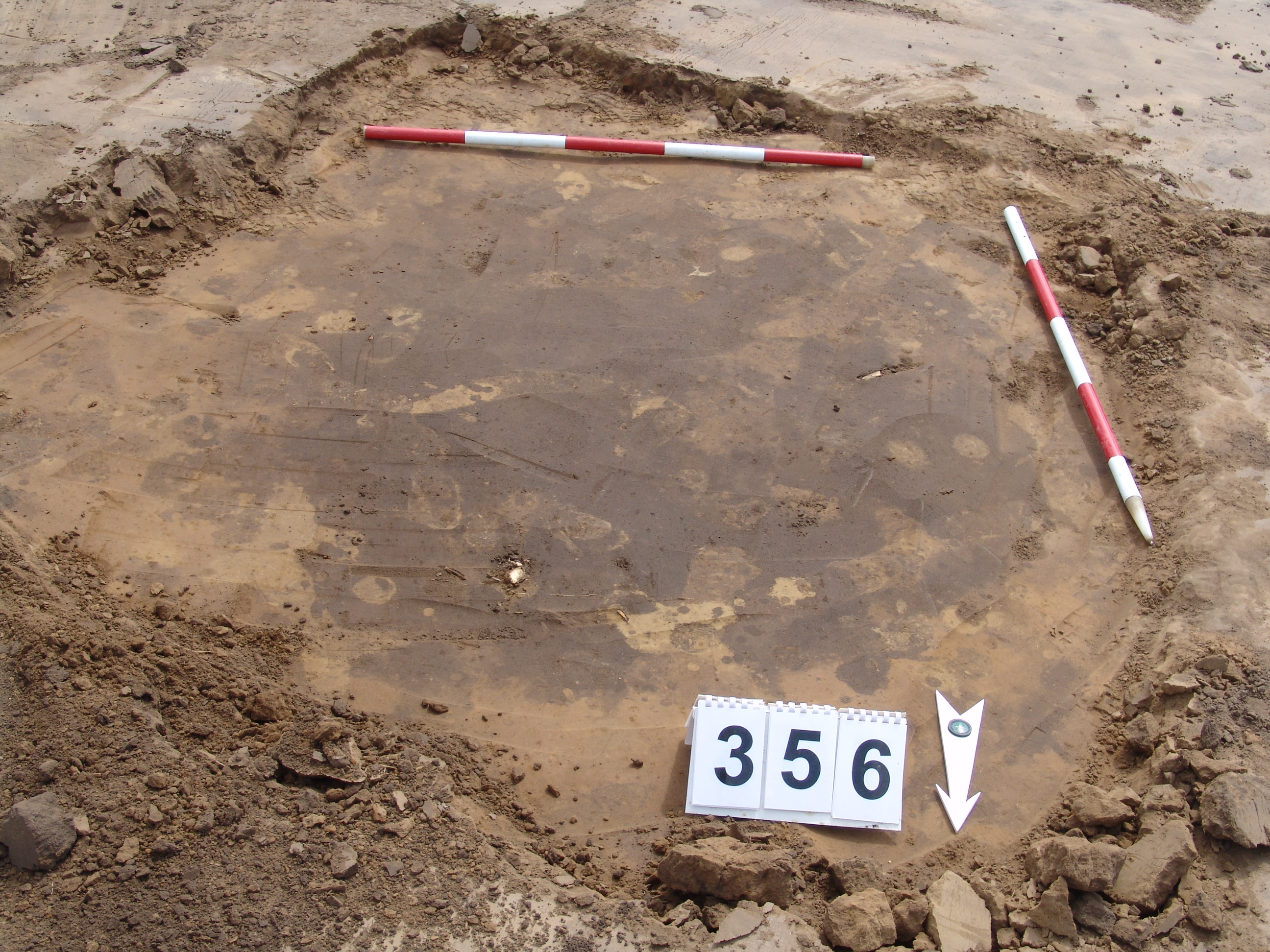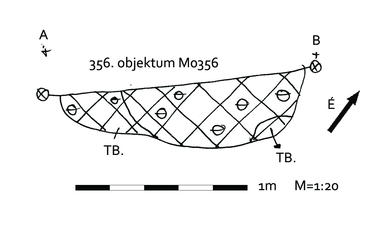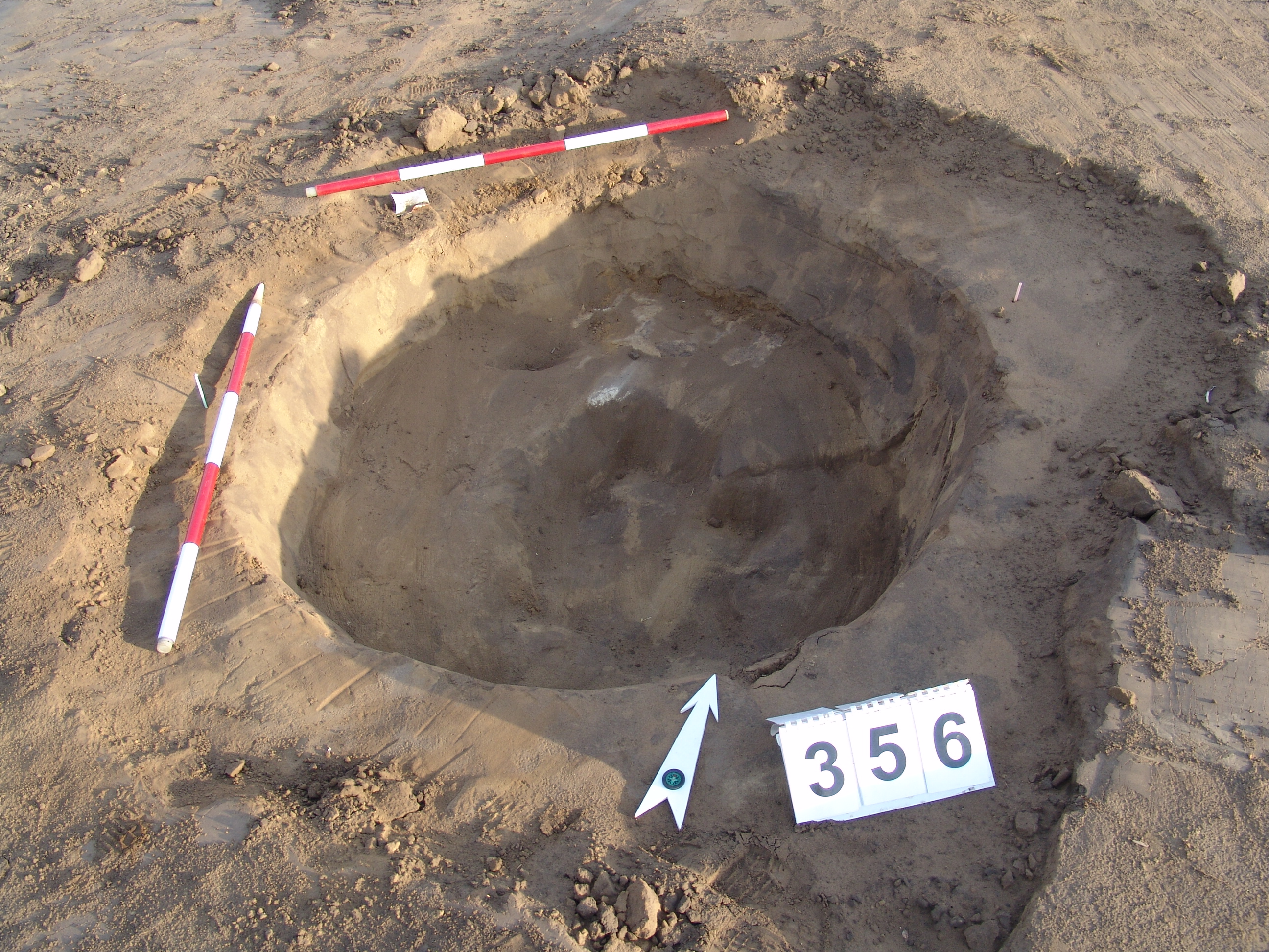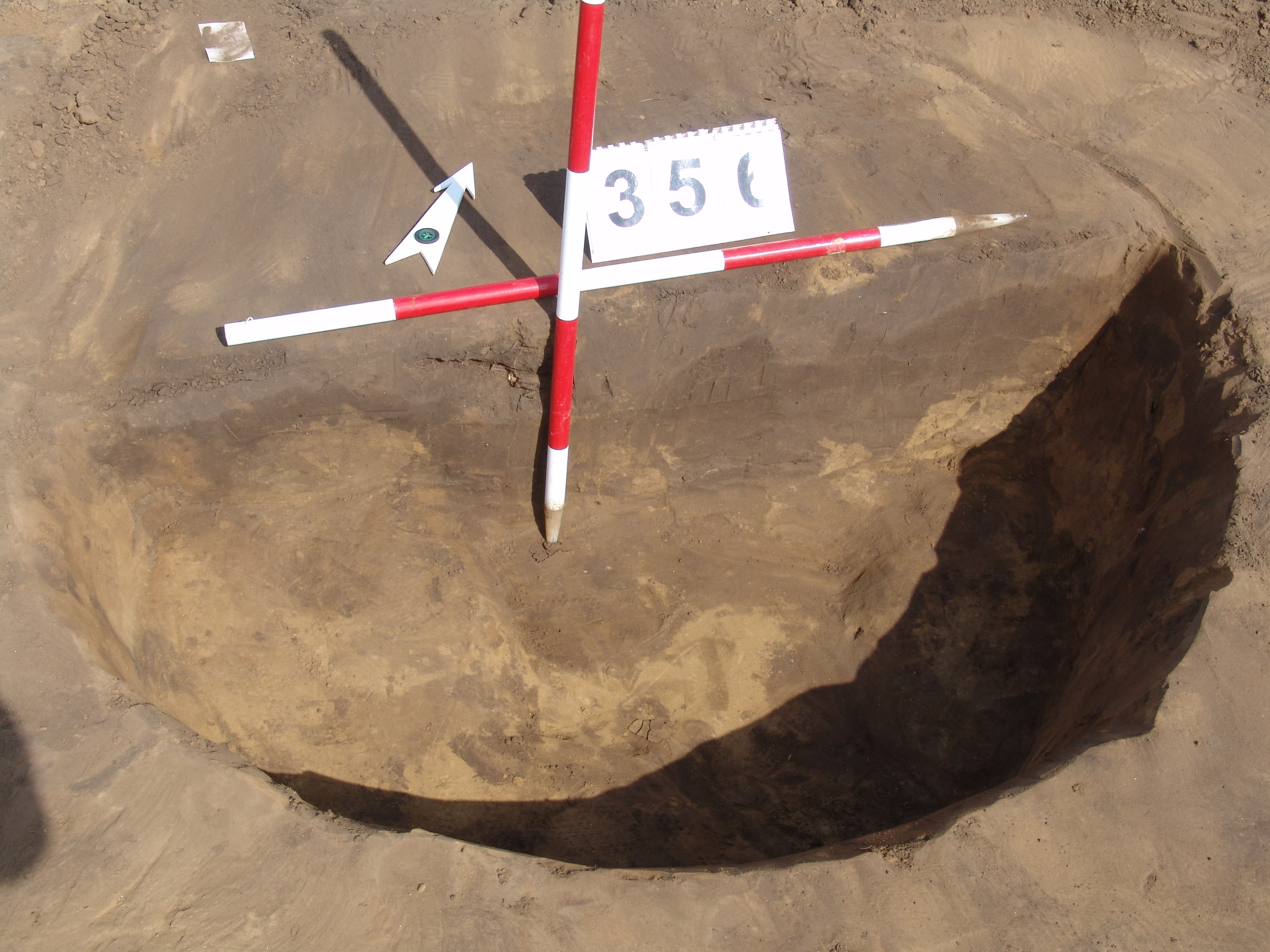 Kör alakú, szürkésbarna, állatbolygatott felszínű objektum a 355. gödörtől D-re 5 m-re.