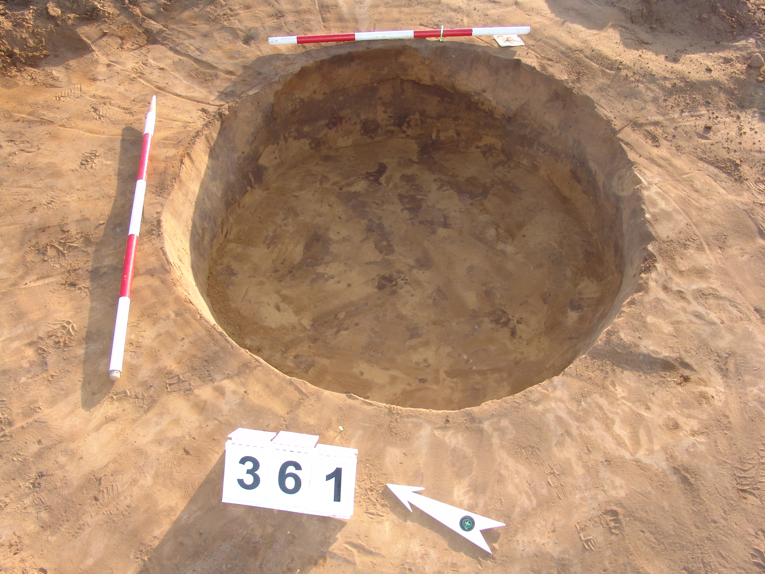 Meredek falú, egyenes aljú, kör alaprajzú gödör.