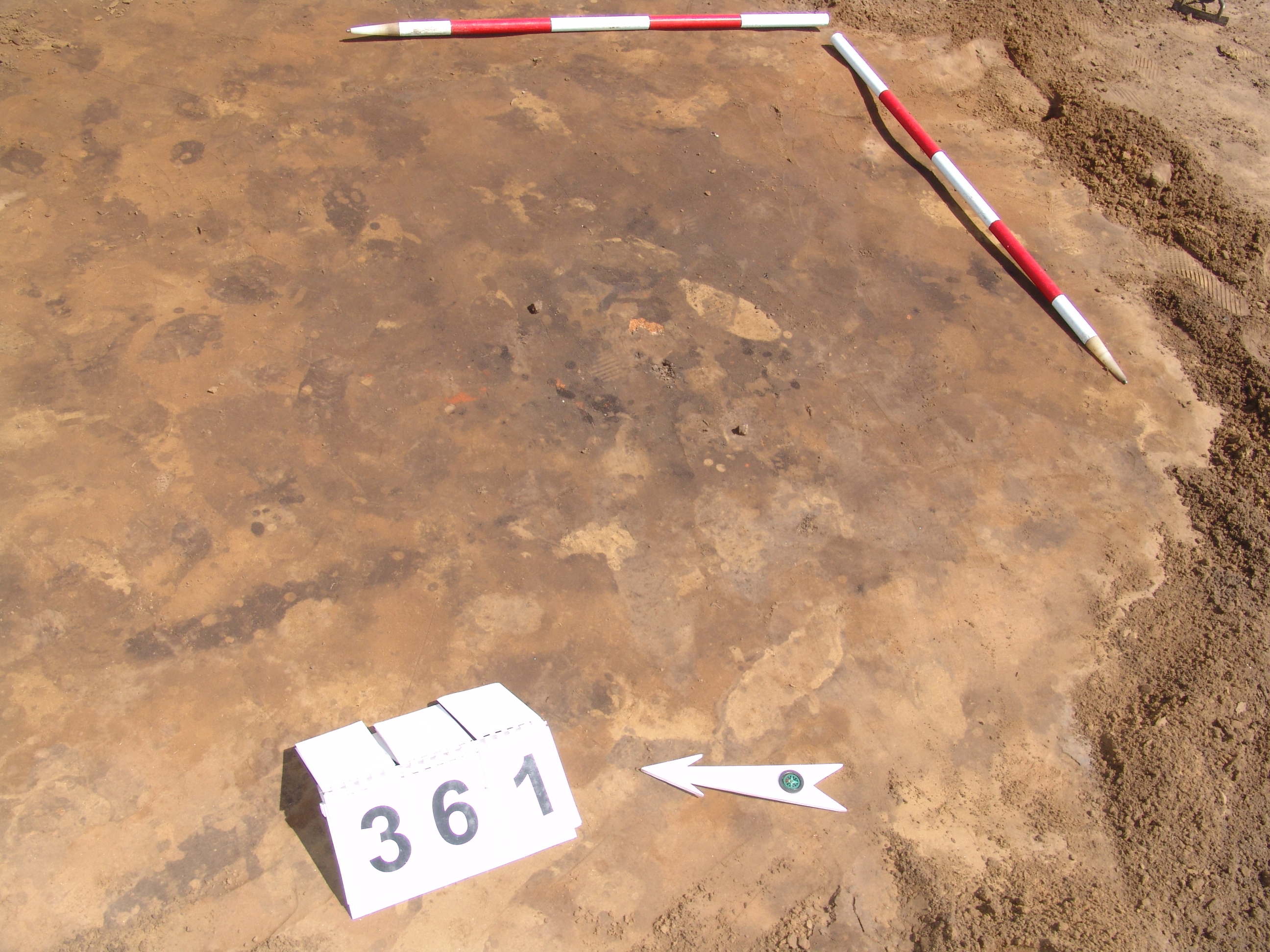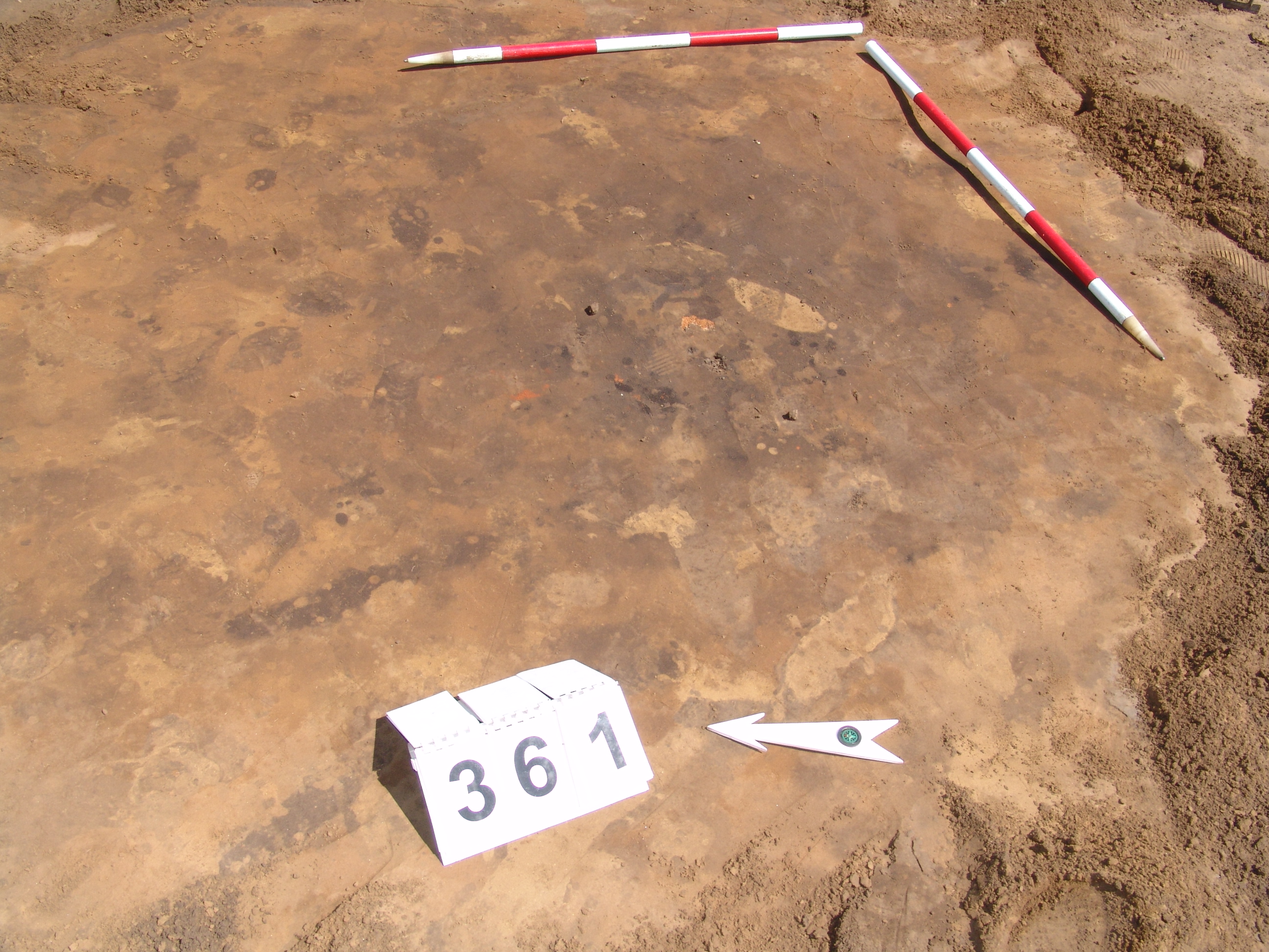 Nagyjából kör alakú, kormos, maszatos kis folt a 362-től Ny-ra 1 m-re
