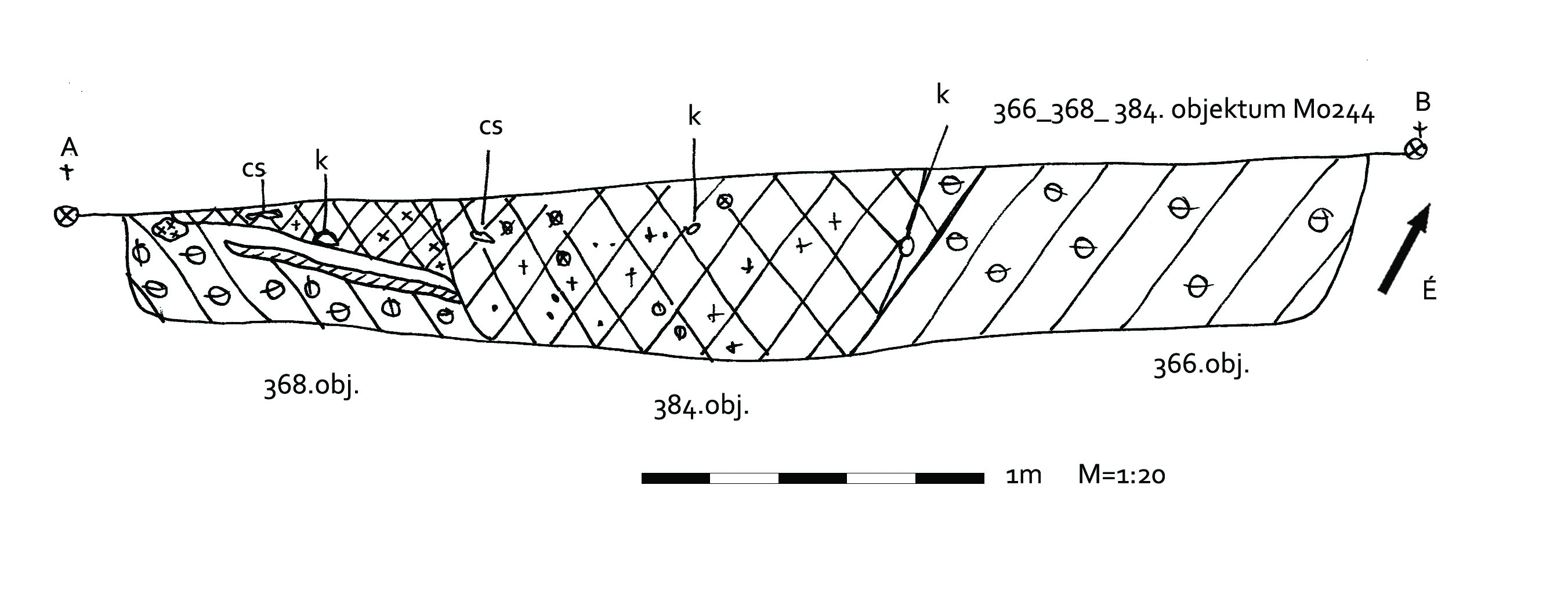 Kerek, jól látható folttal jelentkező objektum, melyet Ny-i oldalán vág a 368. objektum. Az újranyeséskor úgy tűnt, hogy egy harmadik (384) objektumot ástak a 366 és 368 találkozására.