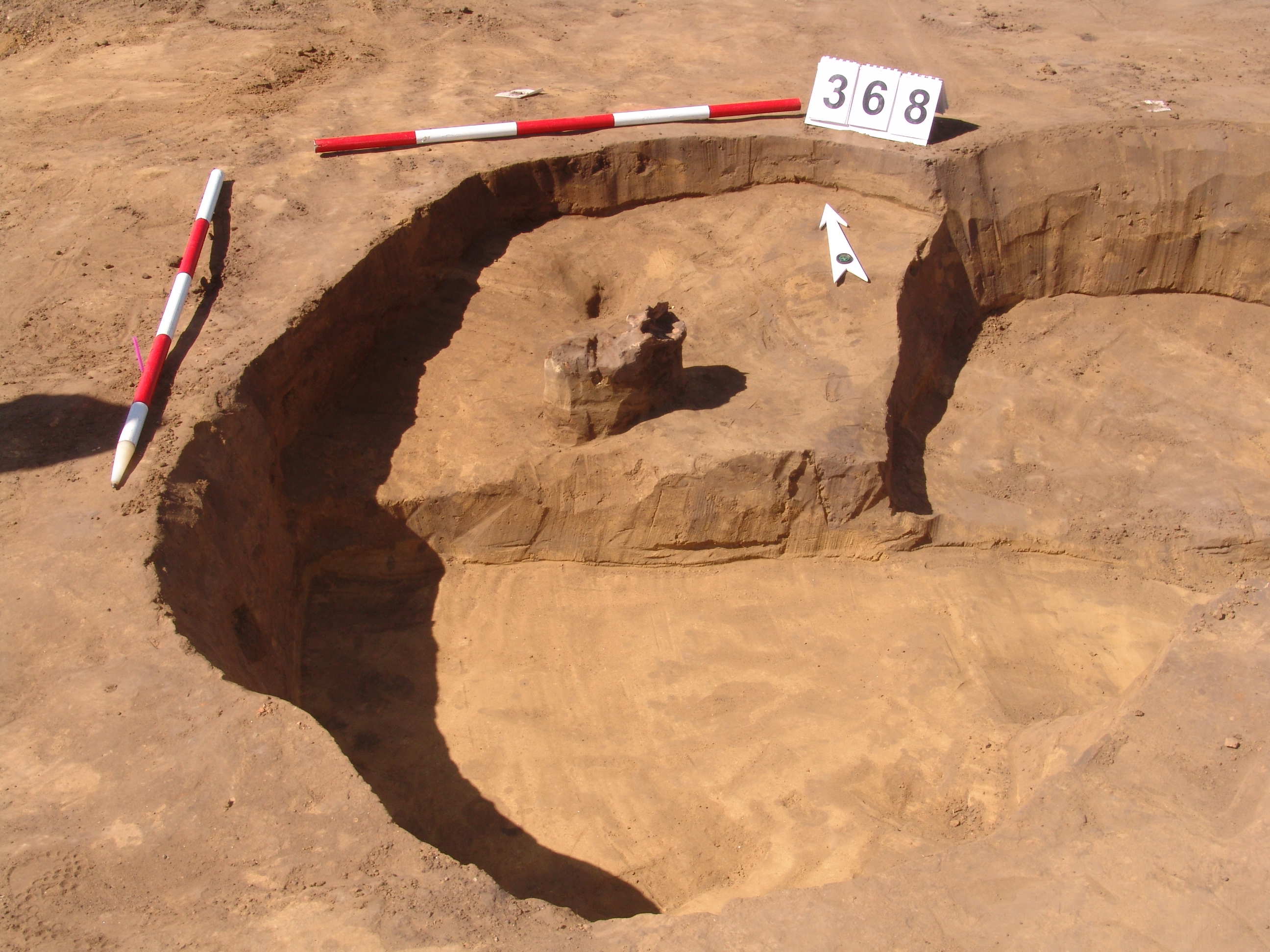 Felül 15 cm- es barnás szürke, tele cseréppel, paticcsal, kormos, hamus. Alatta réteges sárga-szürke világosabb. Középen "Púpos" a betöltés. Fala csaknem függőleges, alja egyenes. Kör alaprajzú.