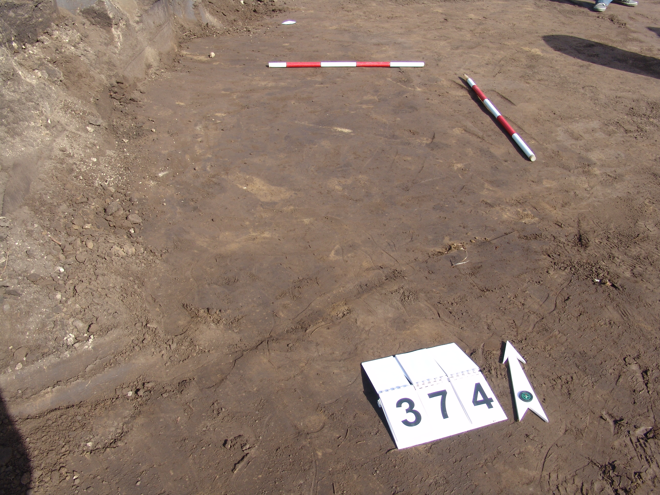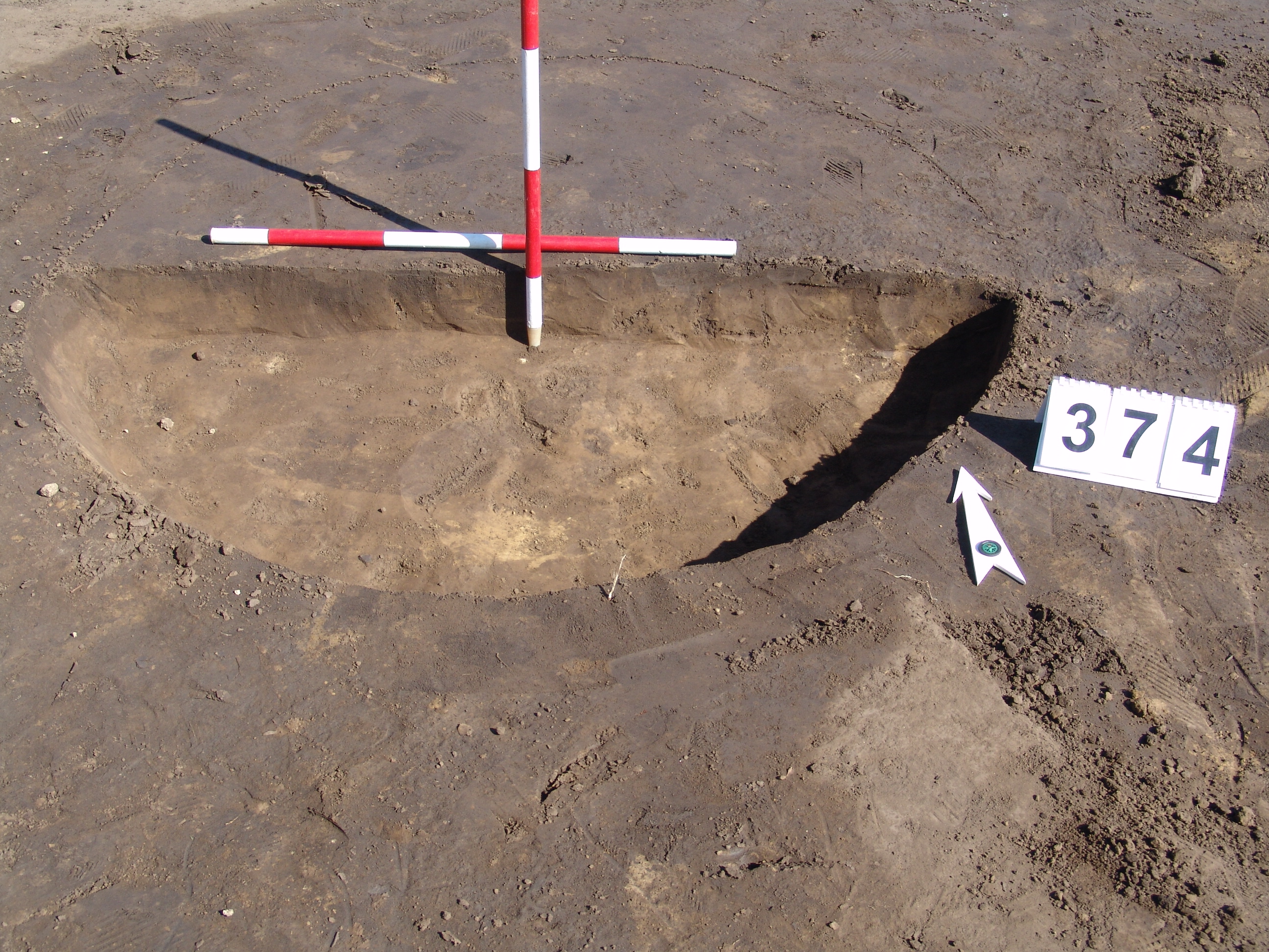 A szelvény ÉNy-i sarkánál, humuszolás közben jelentkező objektum. É-D-i irányban enyhén ovális, közepesen jól észlelhető folttal jelentkezett. Bontás során kiderült, hogy nem régészeti jelenség.