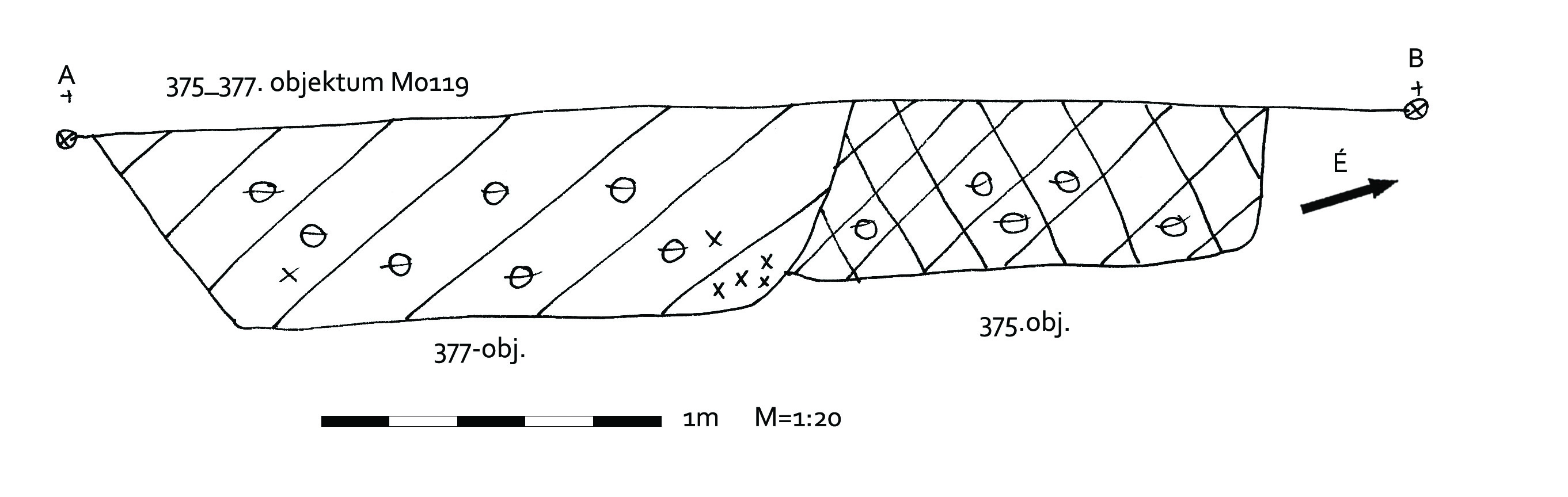 K-i részén kicsit túlbontott az alja. A metszeten nem látszik a viszony a 375-tel, valószínűleg ráásták.