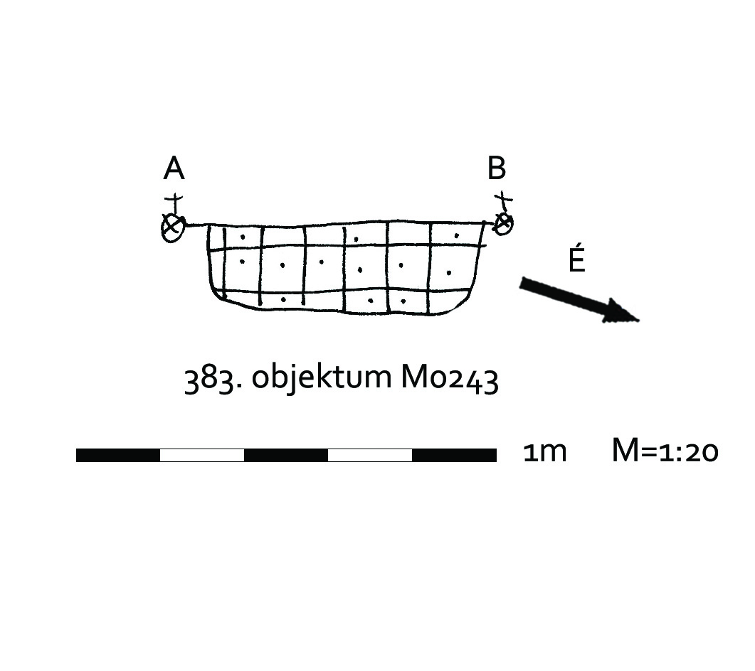A 3431. karó közvetlen közelében kis kerek kormos folttal jelentkező objektum. Fala kissé meredek, alja egyenes. Betöltése: kormos, fekete. Átm: 65 cm M: 23 cm