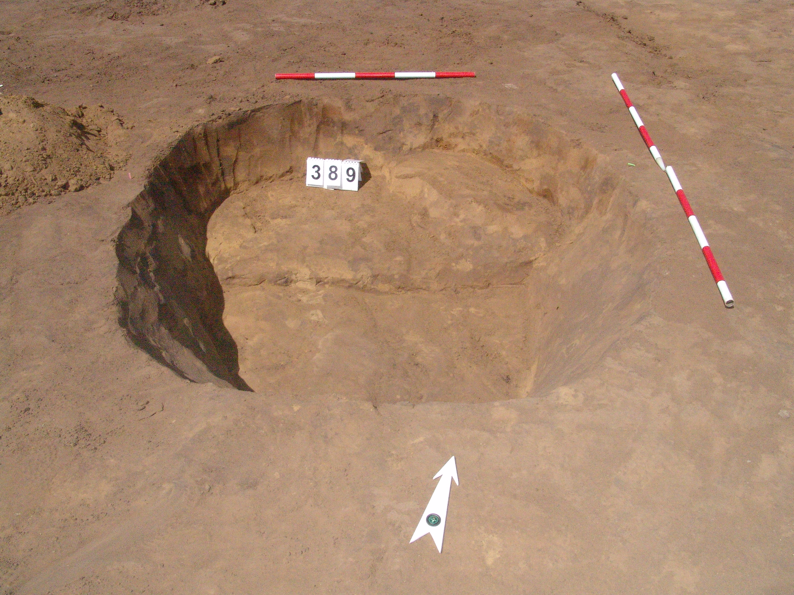 A 4443. objektumtól D-re kb. 3-4 m-re kissé szabálytalan kerek folt a sárga homokban. Meredek falú, ovális alaprajzú, egyenes aljú gödör.