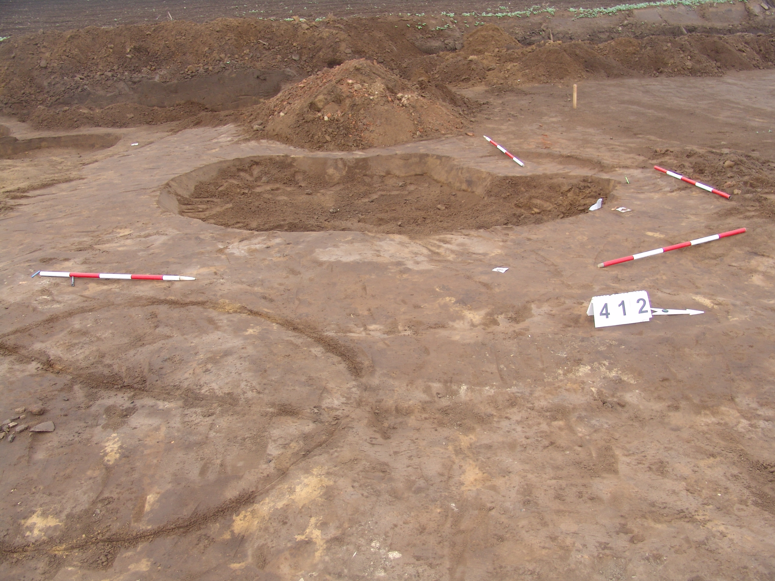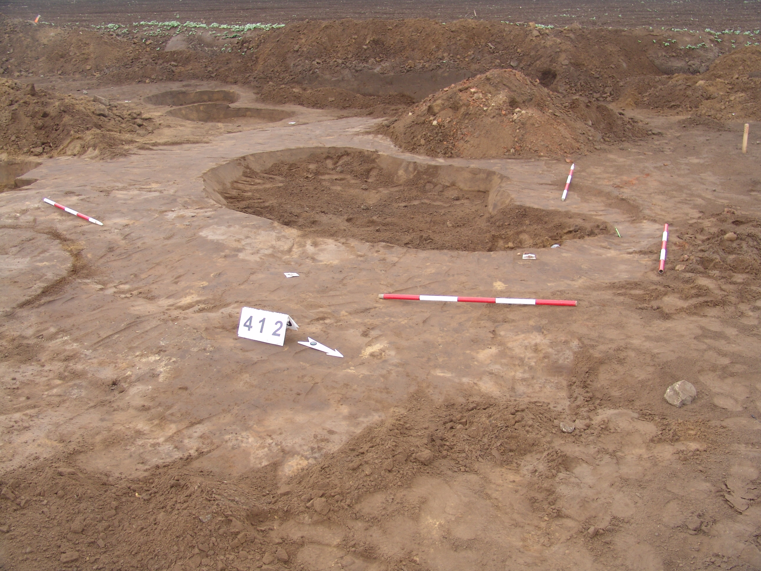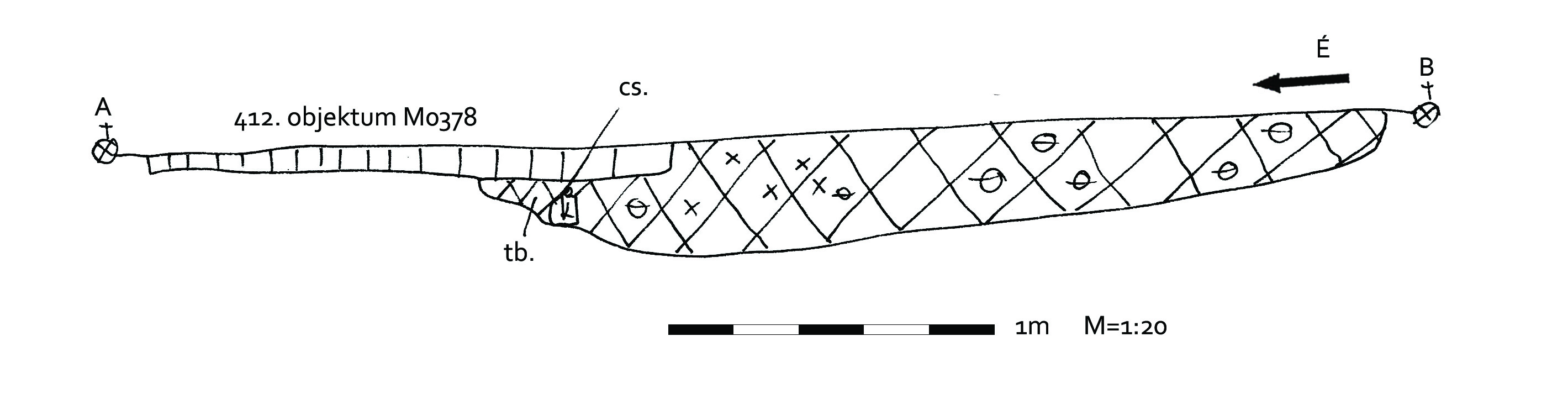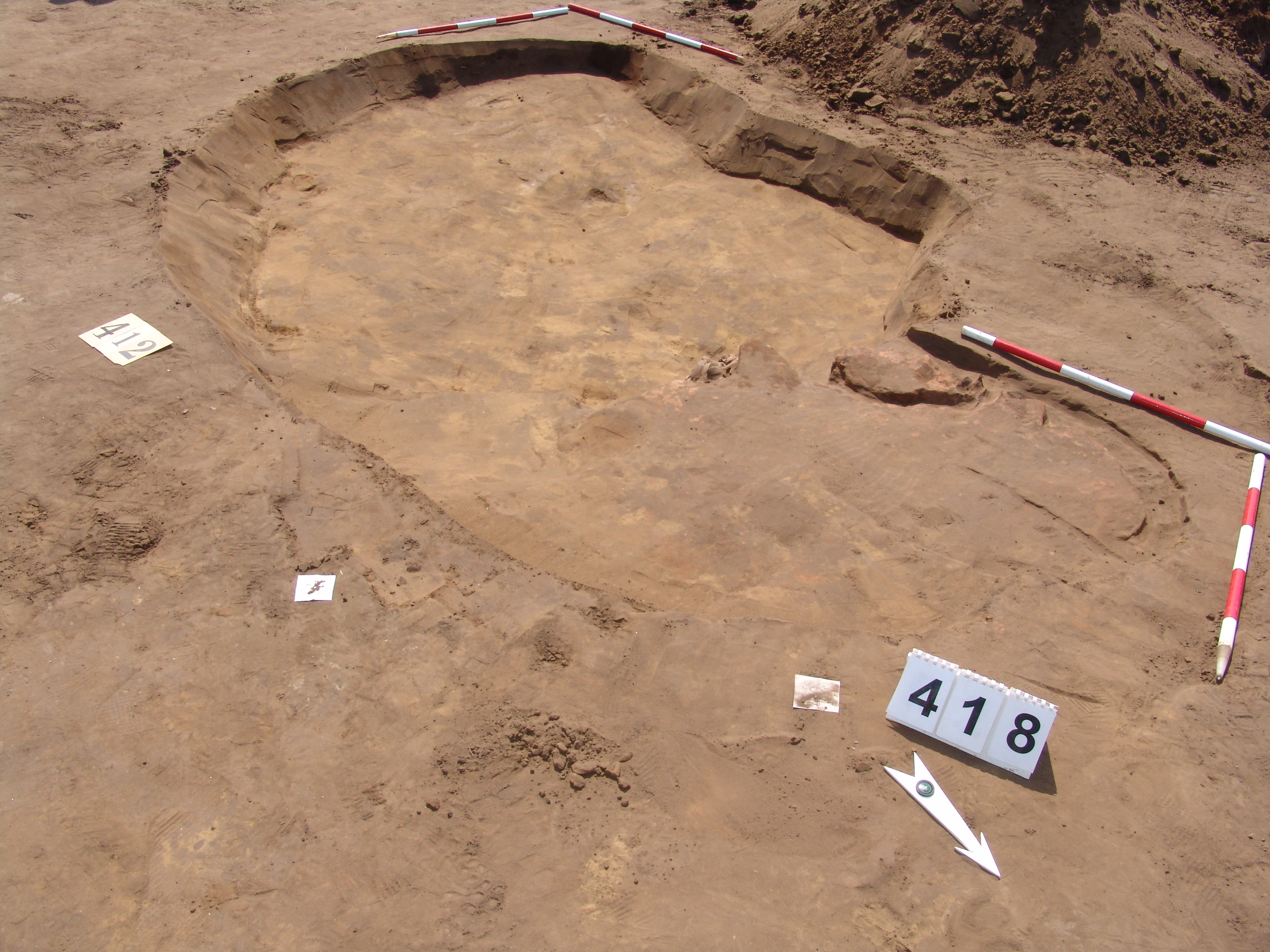 A 4361. karótól DK-re 3 méterre nagy kerek folttal jelentkezett. Tőle É-ra alatta a 418. objektum a kemencéje az É-i oldalon. Fala meredek, alja egyenes. Betöltése: barnásszürke, egynemű.